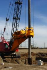 Las pilas fueron perforadas en seco, hasta empotrarse en la profundidad de proyecto, utilizando una perforadora marca Soilmec, modelo RT-3, de 21,000 kg-m de par de torsión, montada sobre una grúa sobre orugas marca Link Belt, modelo LS-108, de 45 ton de capacidad nominal.